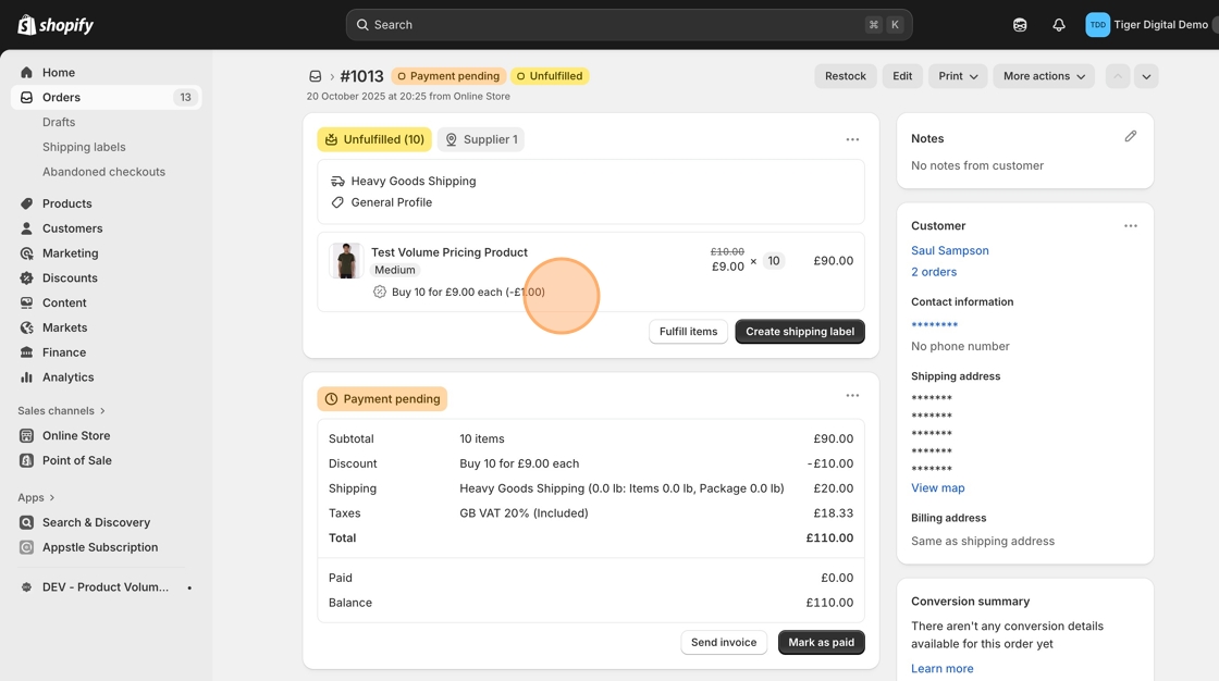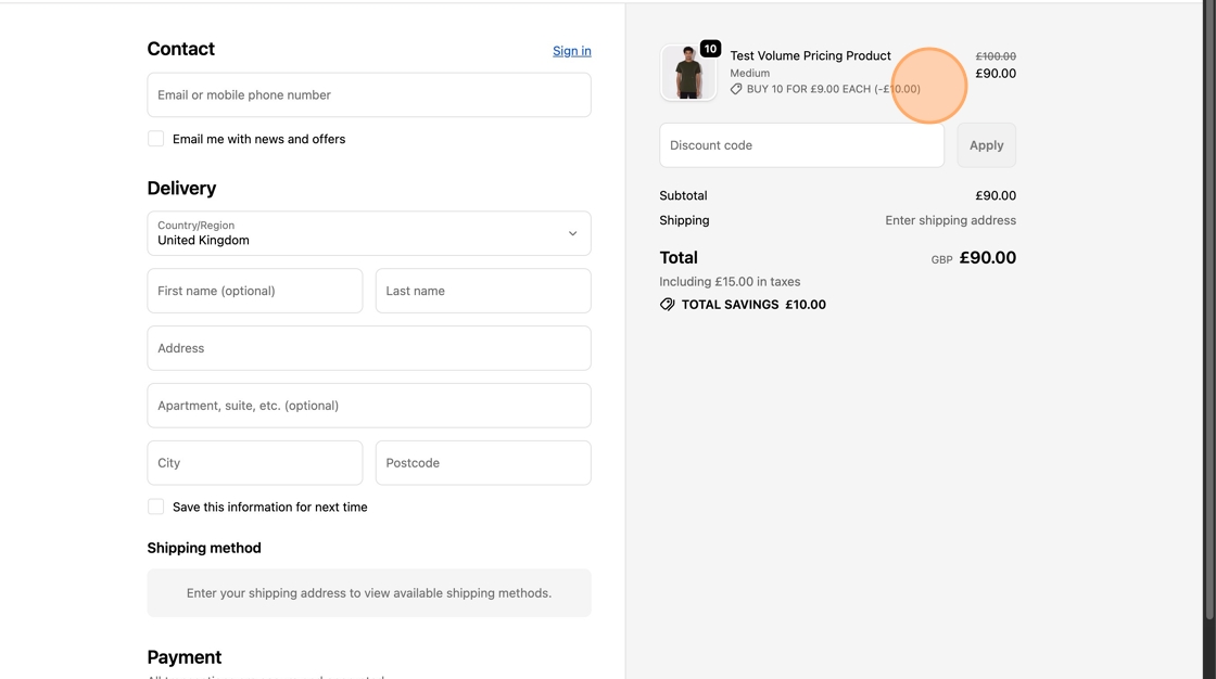 Volume pricing discounts are displayed across all key Shopify touchpoints, just like a regular discount coupon: