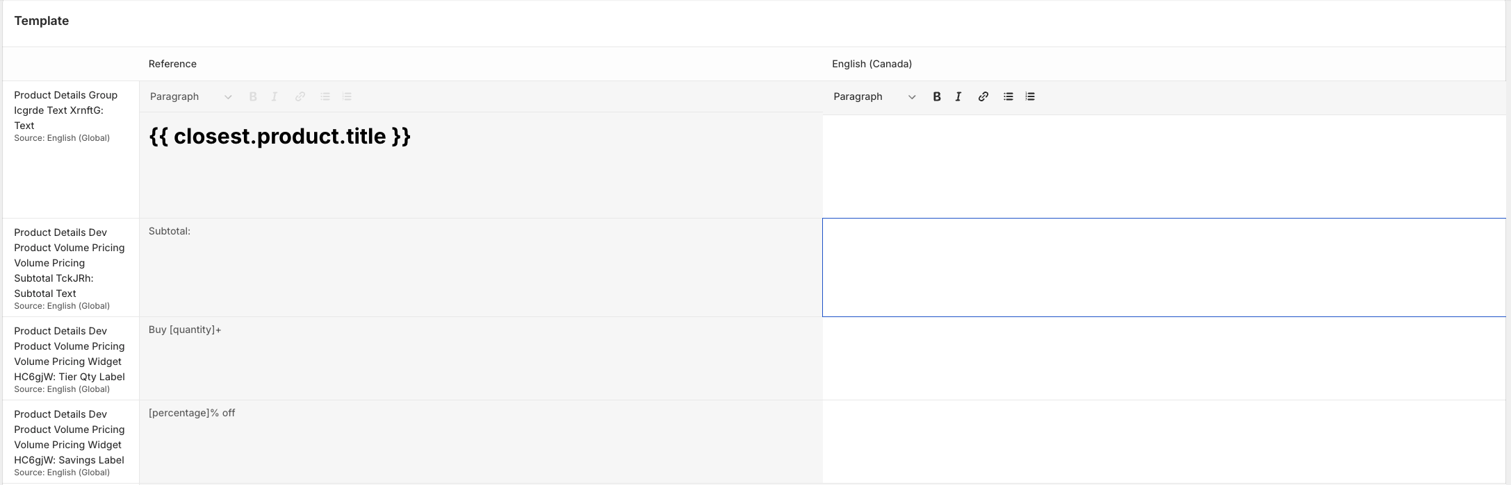 The MNML Volume Pricing widget fully supports Shopify’s translation system. You can use Shopify Translate & Adapt to localise the widget text for any language your store supports — including tier labels, buttons, and headings.